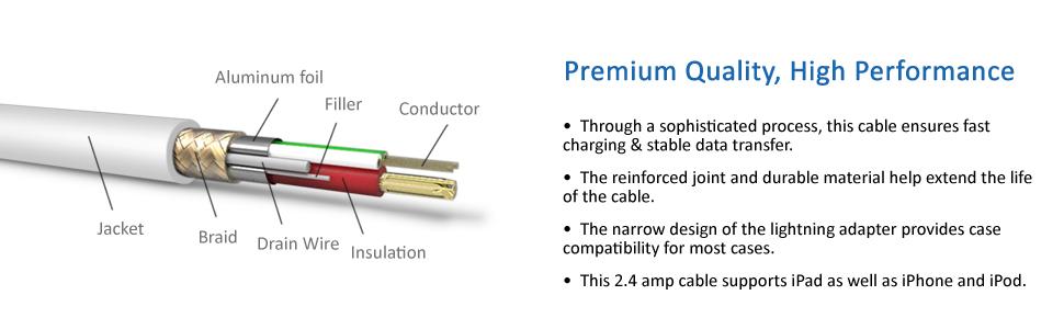 Apple certified, MFi (made for iPhone/iPod/iPad)lightning cable, with authorization chip issued by Apple to ensure 100% compatibility with any Lightning device
