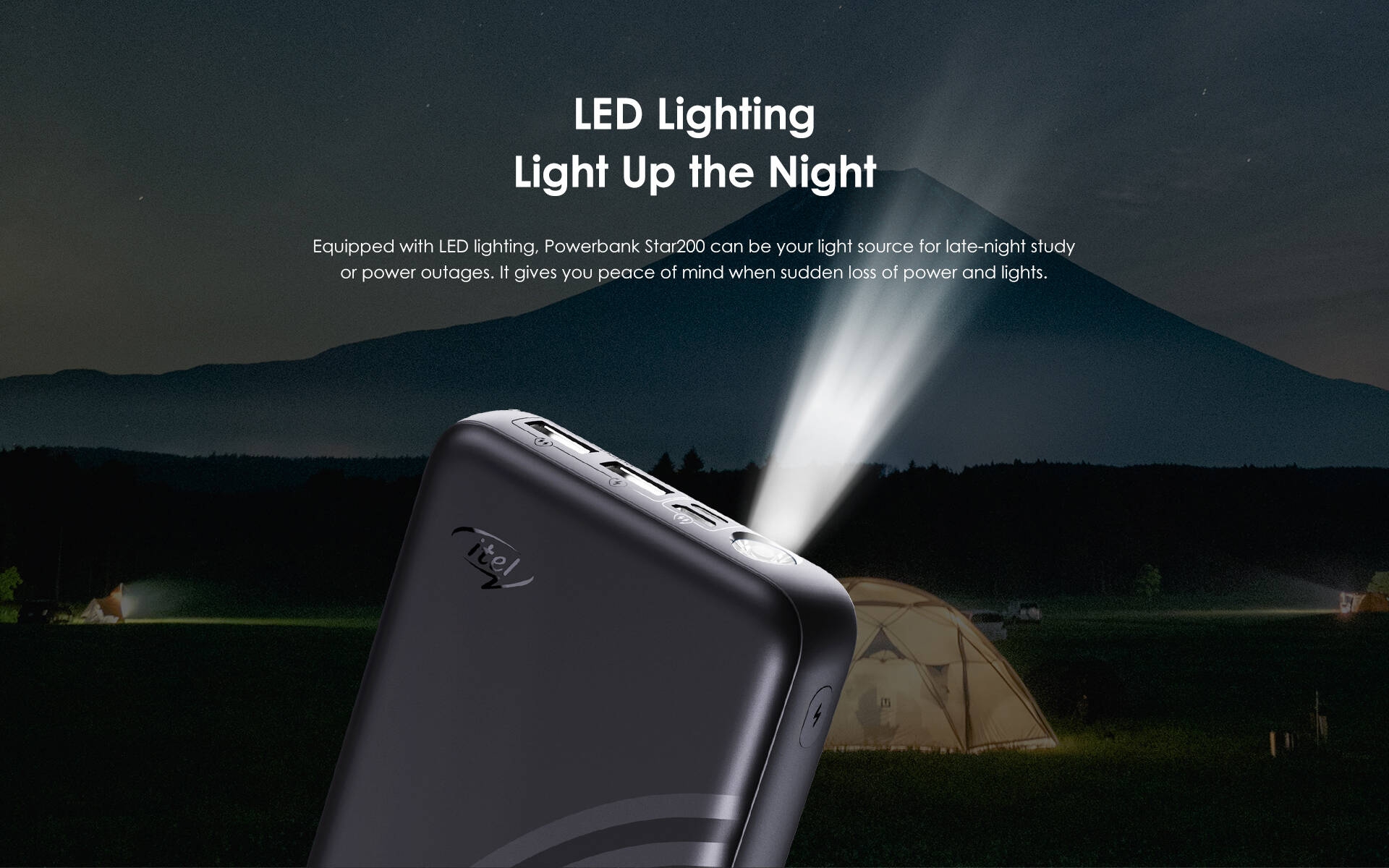 Equipped with LED lighting, Powerbank Star200 can be your light source for late-night study or power outages. It gives you peace of mind when sudden loss of power and lights.