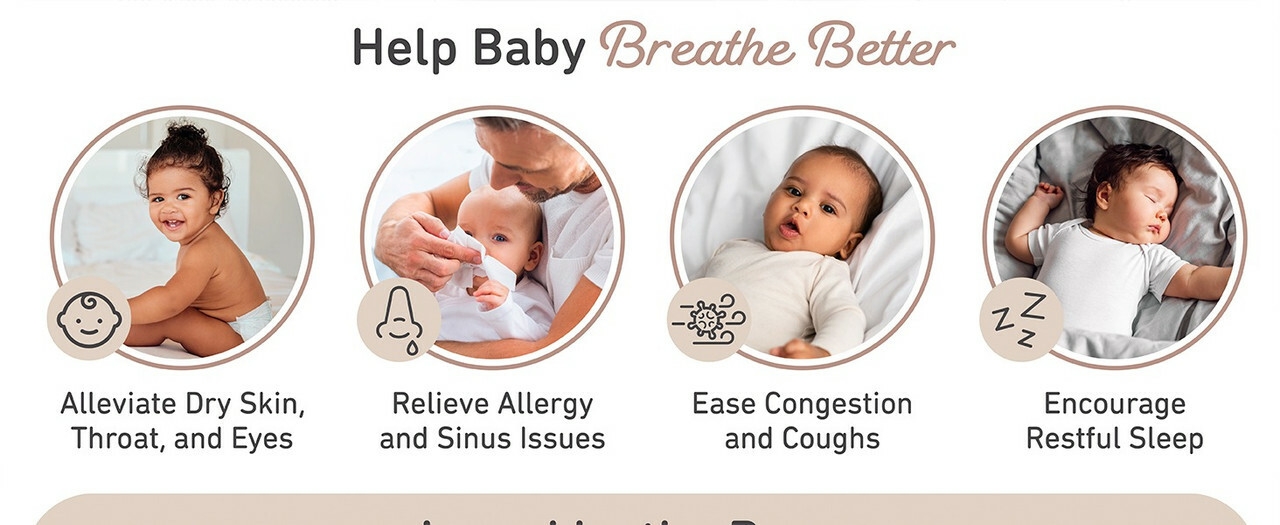 Functions as humidifier, purifier, and night light for bedrooms, offices, and baby rooms.