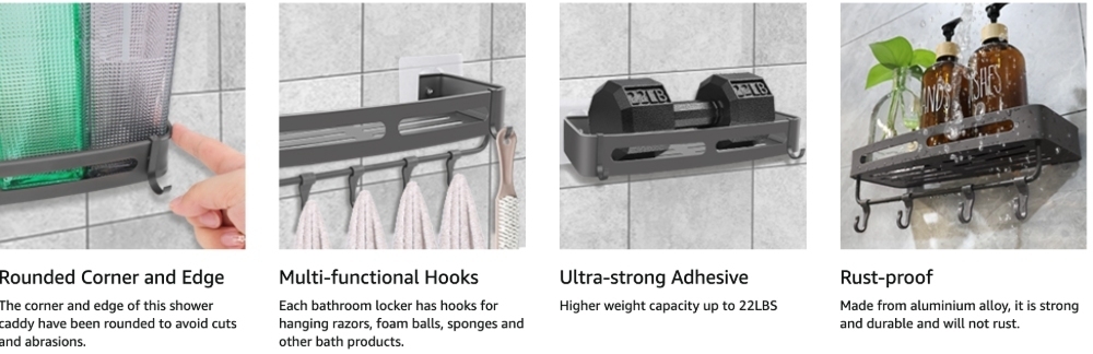 Crafted from aircraft-grade aluminum alloy, this shower shelf combines lightweight durability with strong rust resistance. Measuring 12.6" x 4.9" x 1.6", it supports up to 22 lbs, offering ample organized storage for all bathroom essentials.