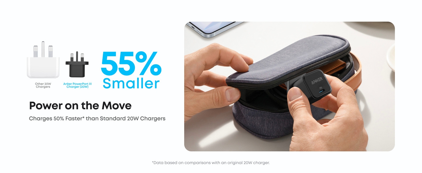 - Take Anywhere: Easily carry PowerPort III 20W Cube with you thanks to the compact design and foldaway charging prongs.