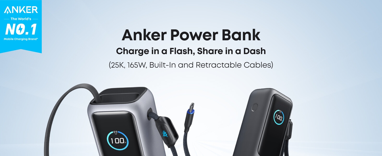 Anker Power Bank (25K, 165W, Built-In and Retractable Cables)