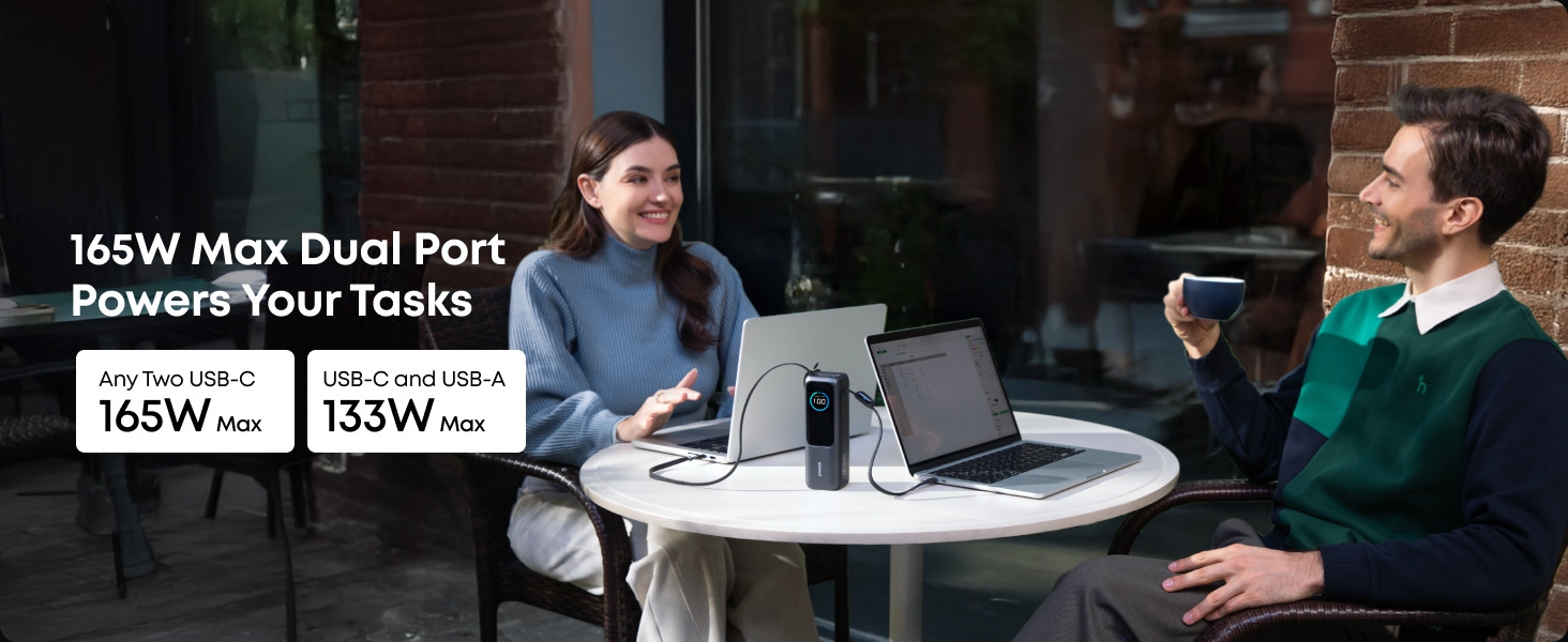 100W from Any USB-C Make the most of every USB-C port, each providing 100W to swiftly recharge the power bank to 30% capacity in just 20 minutes.