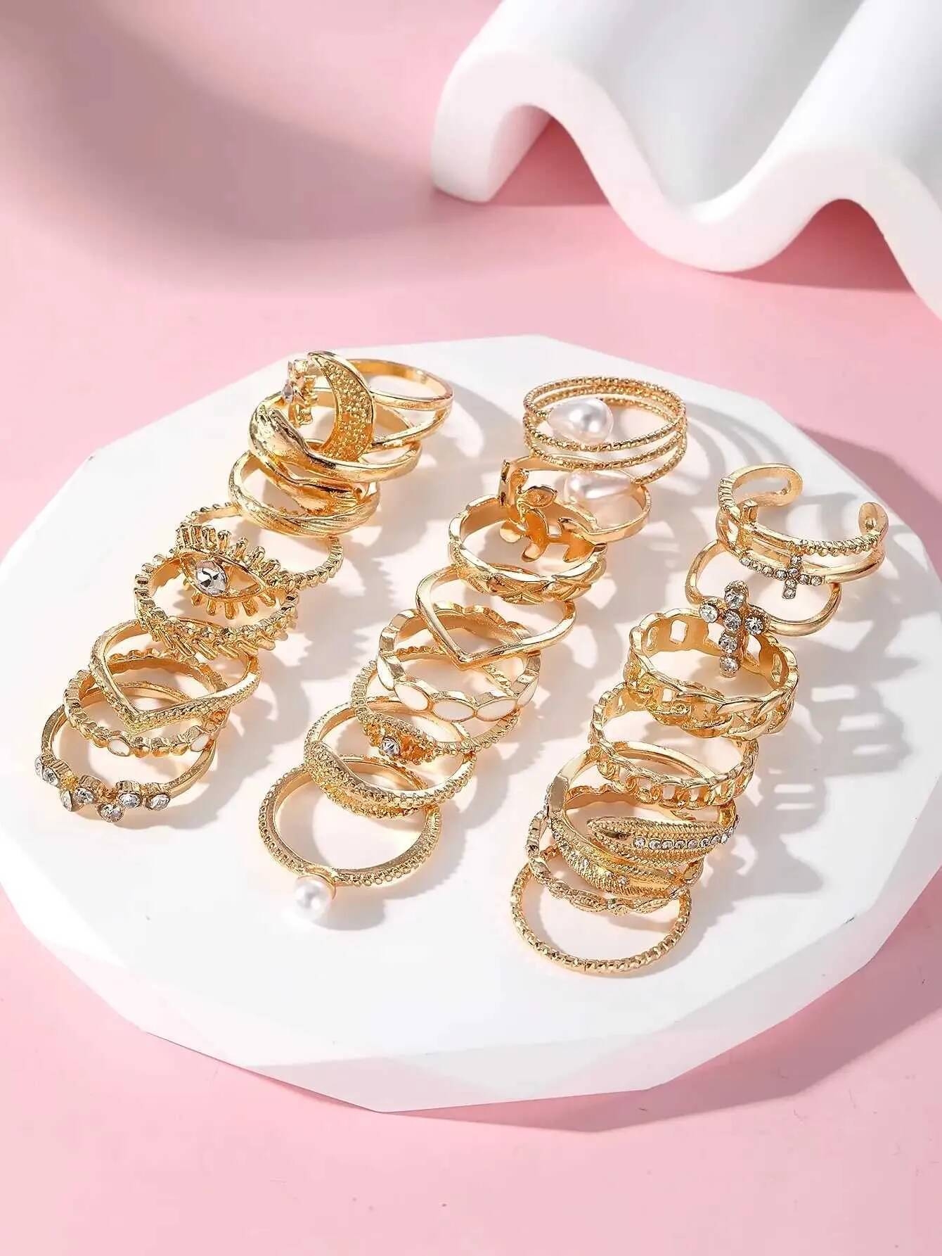 Avsty 22pcs Vintage Ring Set Embrace/ Evil Eye/ Chain/ Moon & Sun Design Mix And Match For Daily Outfits Party Accessories₦ 3,359₦ 6,39948%Add to cart