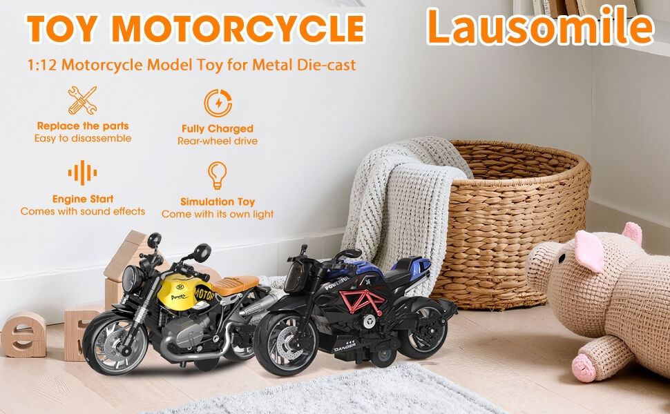 HomeToys & GamesToy Remote Control & Play VehiclesDie-Cast VehiclesAlloy Metal Diecast Motorcycle Model Toy Set, 2 Pack of 1:12 Scale Die-Cast Motorcycles with Light&Sounds, Pull Back Function Toy Moto Bike for Kids Boys Girls and Collectors Ages 3 and up