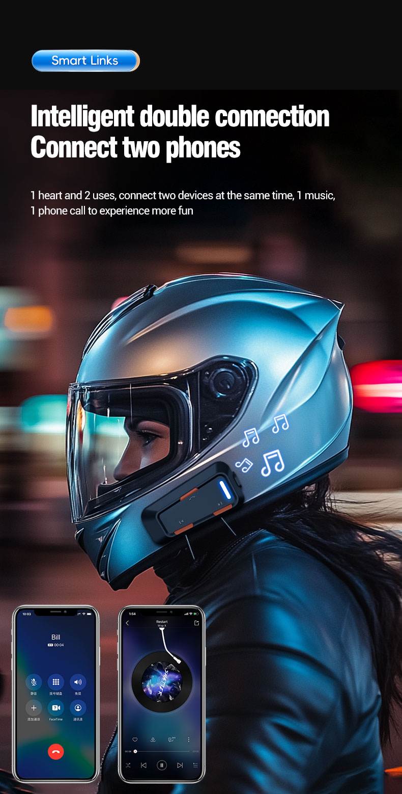 Key FeaturesMotorcycle helmet Bluetooth earphones, Outdoor Cycling Voice Communication, automatic answering noise-canceling headphones, touch-sensitive waterproof smart voice long-range battery-powered headphones