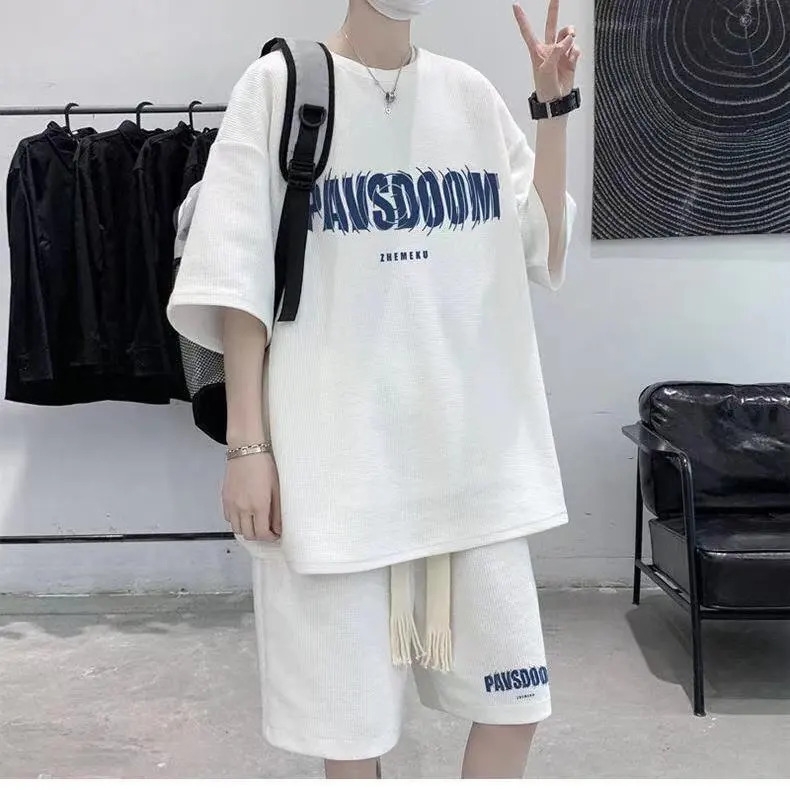 2pcs Men's Short-Sleeved T-Shirt + Shorts Set - White