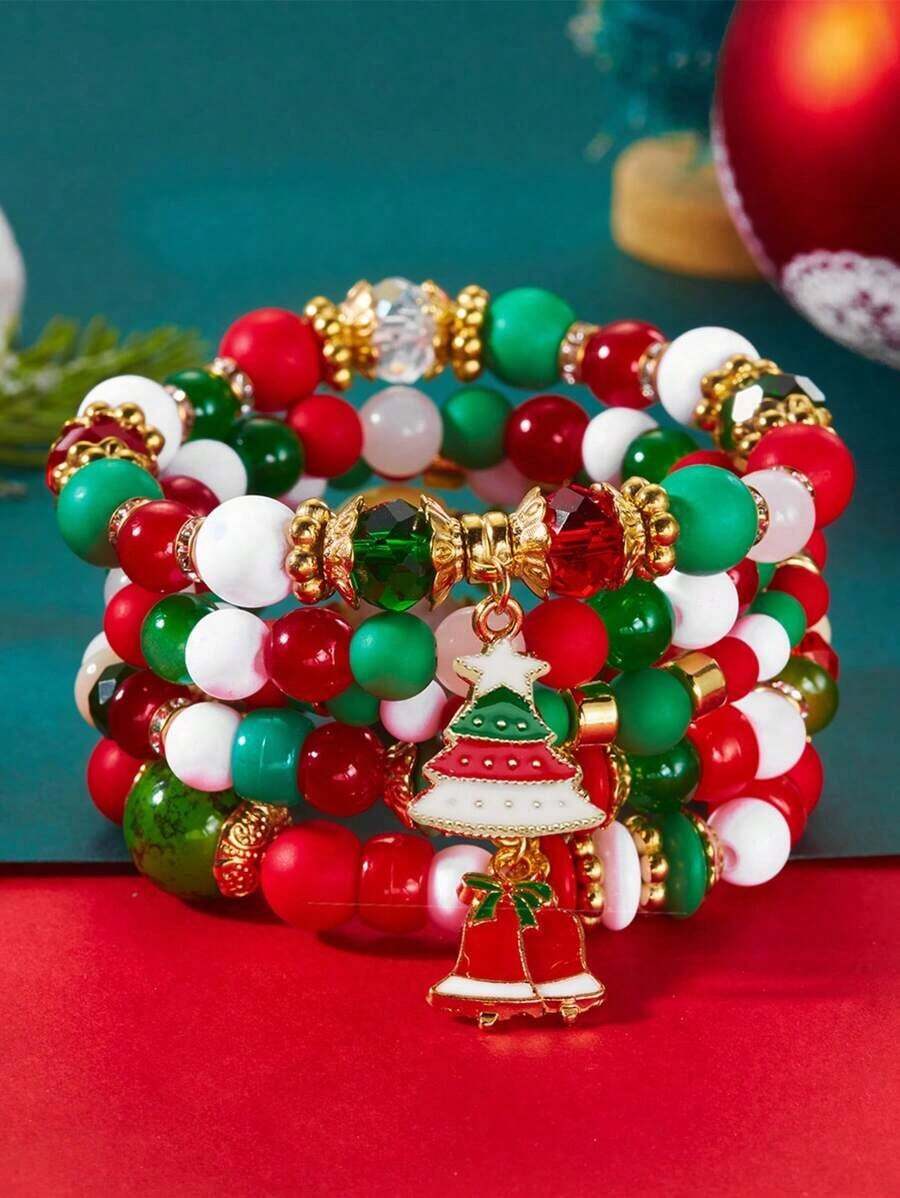 HomeFashionWomen's FashionJewelryFashionBraceletsBangle5-piece Christmas tree beaded bracelet set, festive and a perfect Christmas gift.