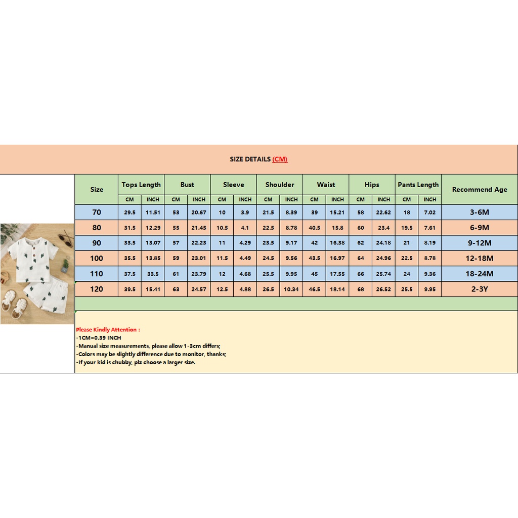 Please Kindly Attention: -1CM=0.39 INCH -Manual size measurements, please allow 1-3cm differs; -Colors may be slightly difference due to monitor, thanks; -If your kid is chubby, plz choose a larger size.