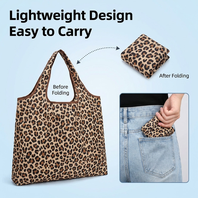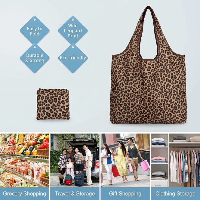 HomeFashionWomen's FashionHandbags & WalletsShoulder BagsFoldable Leopard-Print Eco Shopping Bag 10-20 kg Reusable Tote