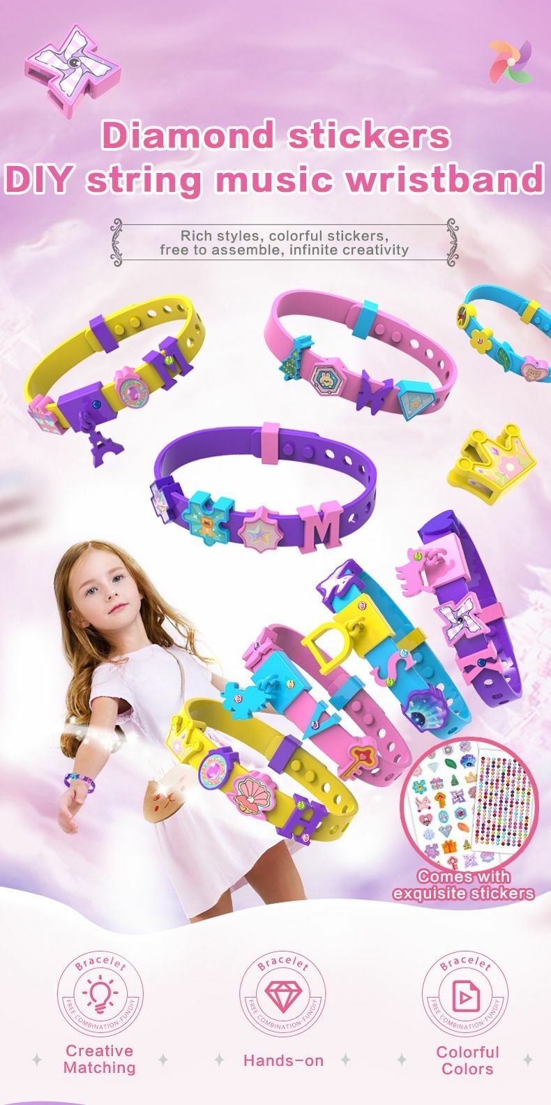 3、Perfect for girls aged 3+, this educational toy develops fine motor skills and color coordination while creating bracelets for friend or family.