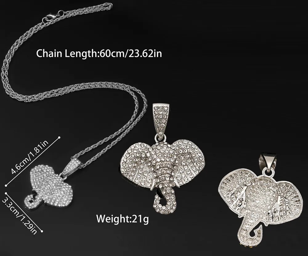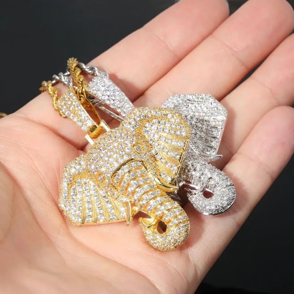 Elevate your style with this luxurious and versatile Elephant Bling Pendant! Crafted from premium alloy, this exquisite piece is hypoallergenic and completely free of lead and nickel, ensuring comfort and safety for everyday wear. The pendant features 1 ct of AAA Grade Cubic Zirconia, meticulously set in micropave style, giving it a dazzling diamond-like appearance. Its heavy feel makes it look and feel genuinely expensive.