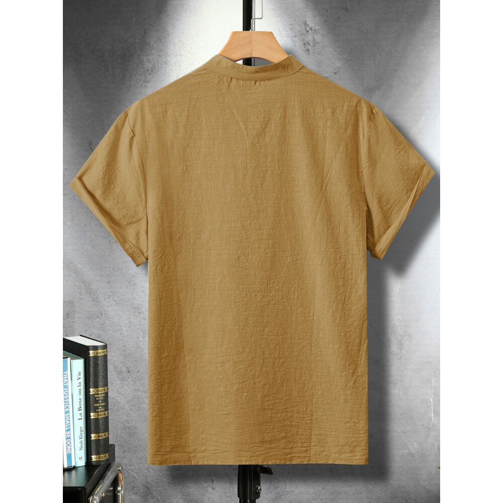 Fashion Design: Casual Henley Collar Shirt, Stand Collar, Simple Style, Solid Color, Regular Fit, Button Closure, Featured Button Detail. These short-sleeved, sleek, fitted shirts are easy to layer with dress pants, track pants, chinos and jeans.