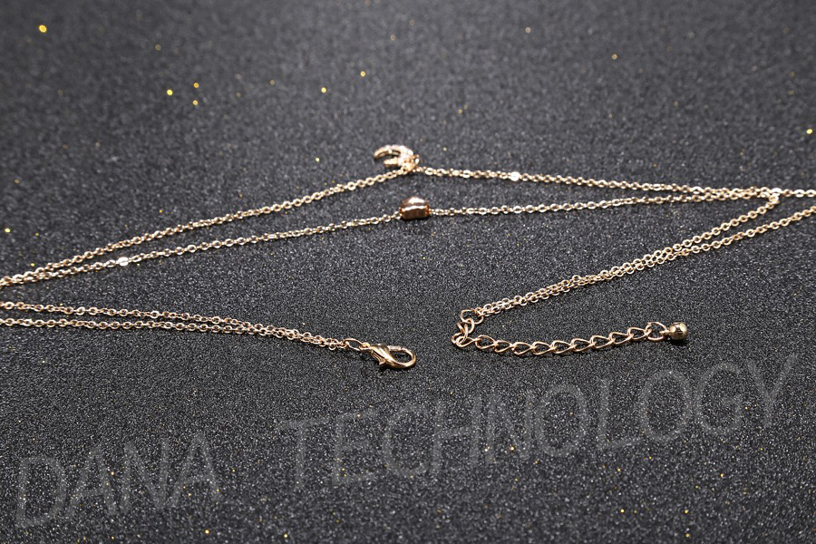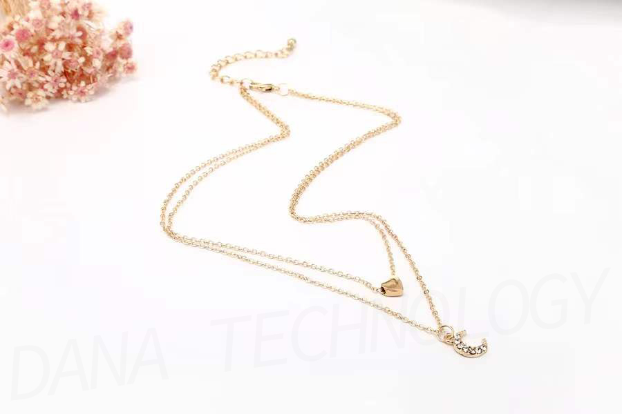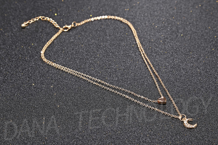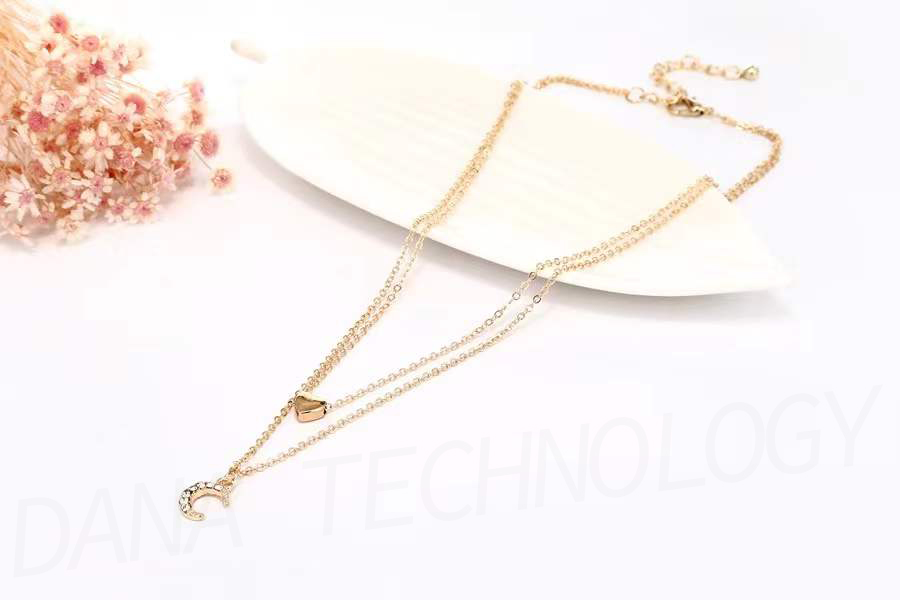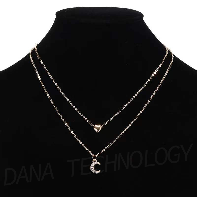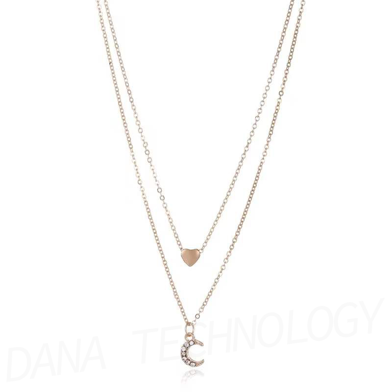 HomeFashionWomen's FashionJewelryFashionNecklacesN005 Ladies Vintage Love Heart & Moon With Diamond Multi-Layer Necklace-Gold
