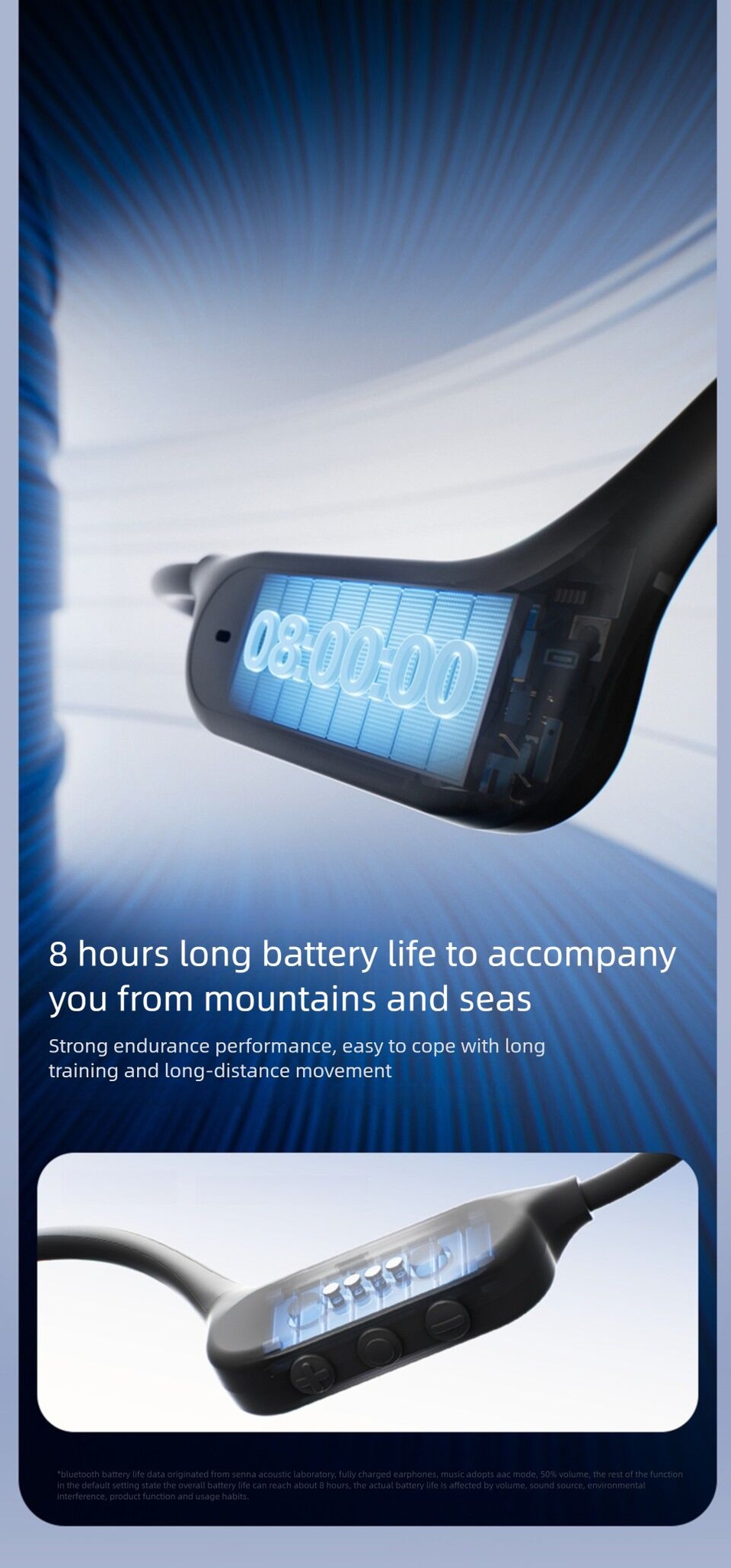 Strong battery life can easily cope with long-term training and long-distance sports. Magnetic charging, click, and charge immediately! Comfortable and stable, open bone conduction headphones can ensure your safety while enjoying music, and the high-definition noise reduction microphone is clear even when riding in the wind.
