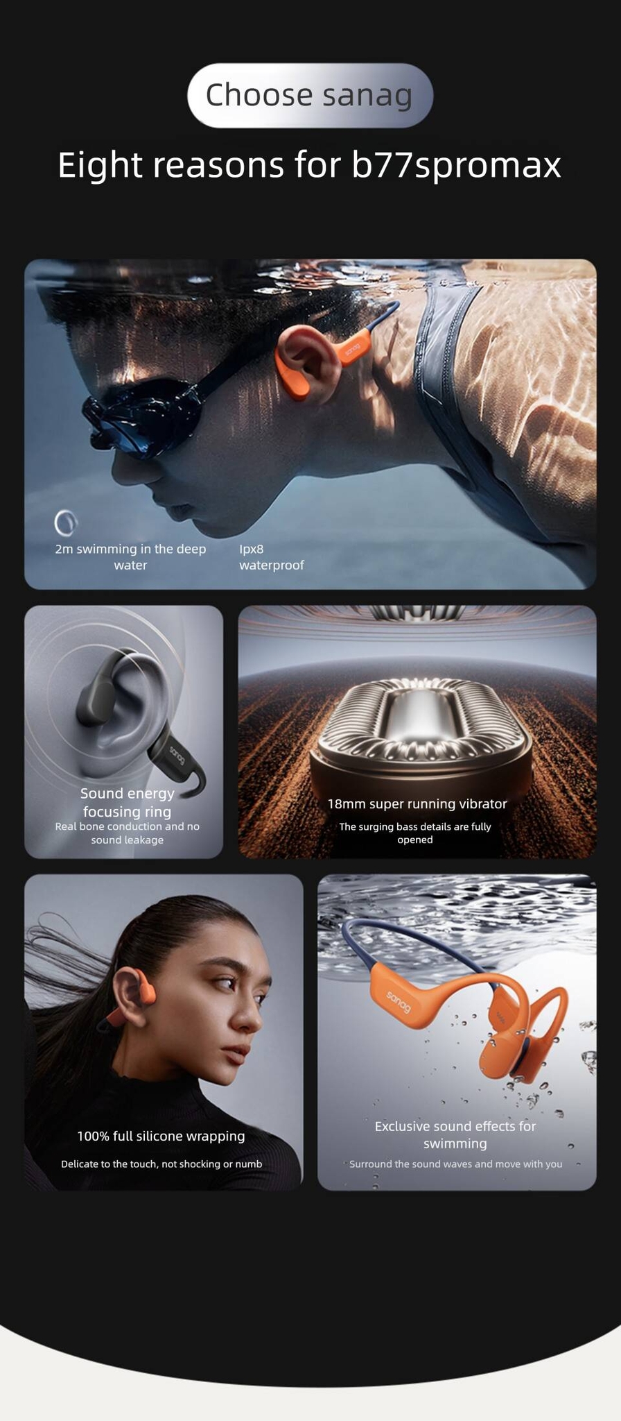 Sanag B77S IPX8 Swimming Earphones Bone Conduction Bluetooth Headphones Flash-sale 64GB Memory MP3 Player Wireless Headset