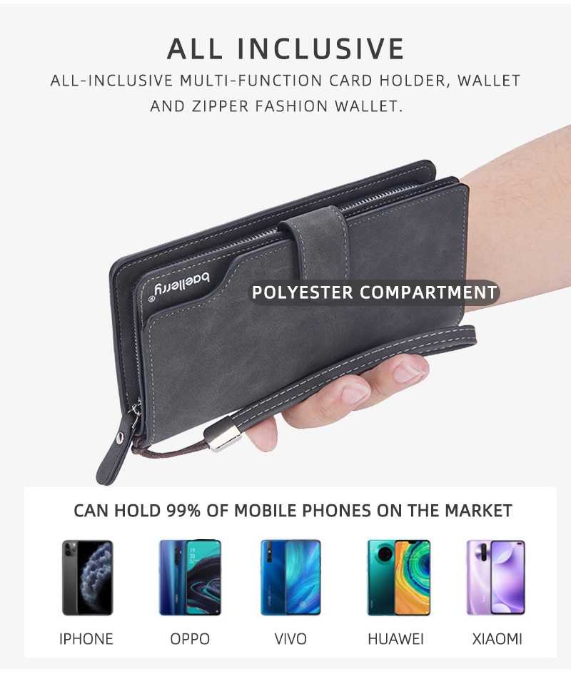2. Large-capacity layered storage, with multiple card slots, banknote slots, invoice slots, coin zipper slots, and mobile phone slots inside, cards, cash, mobile phones, etc. are stored in categories.