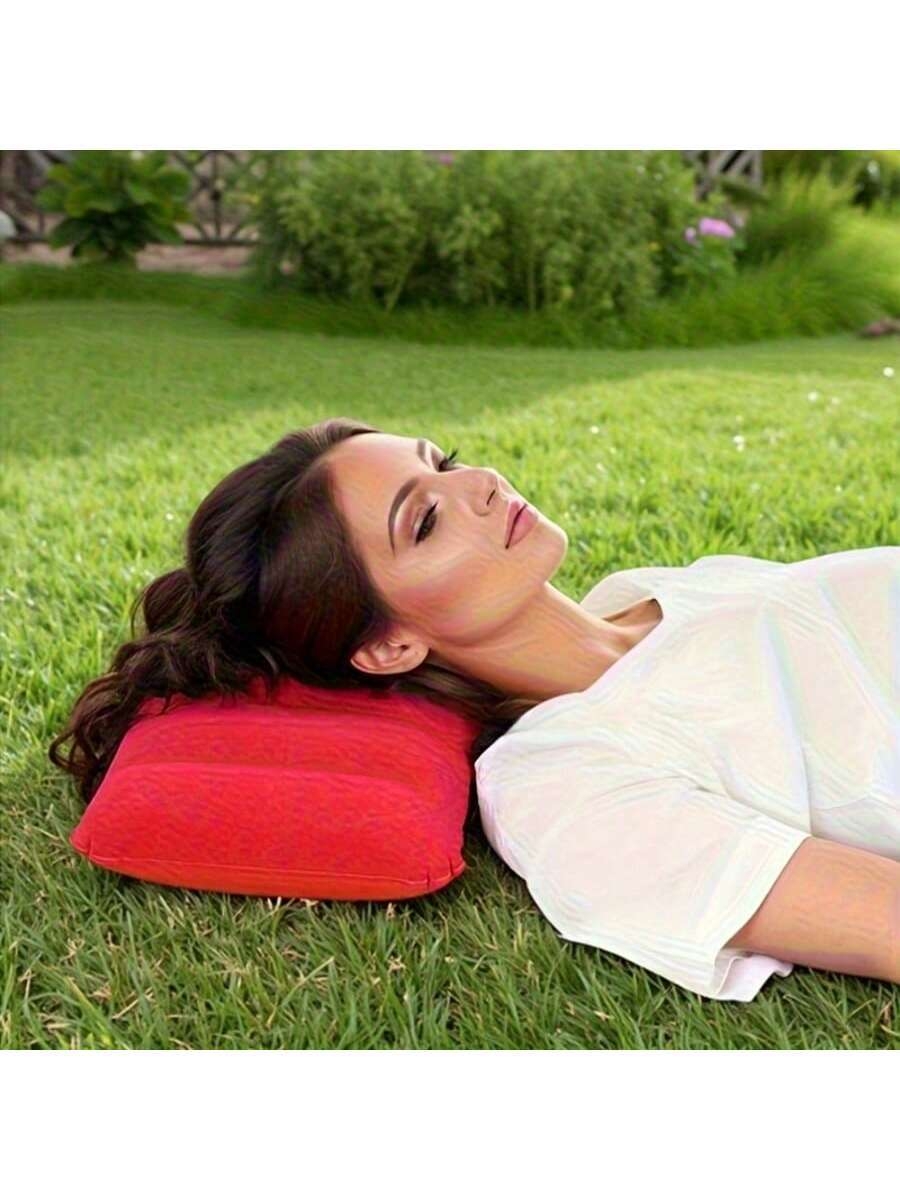 1 PC Portable PVC Flocked Inflatable Pillow for Travel & Office-Grey