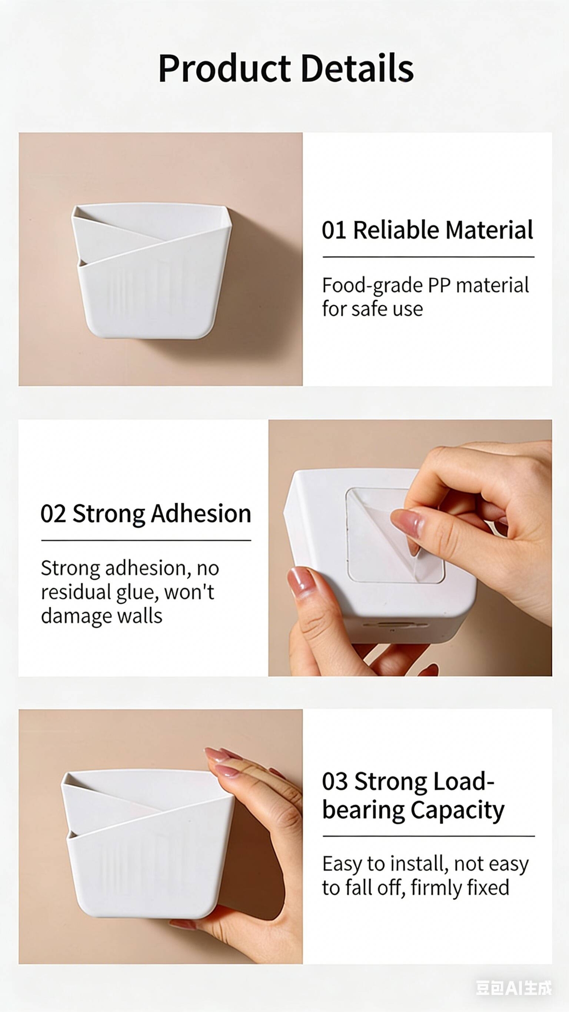 - Wall mounted installation, no drilling required in most cases, easy to install and save space.