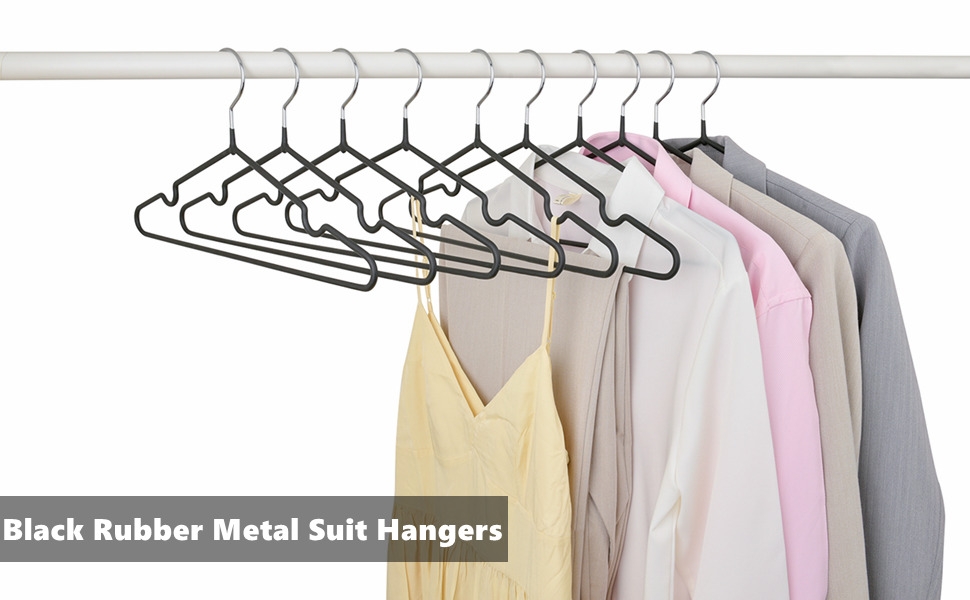 HomeHome & OfficeHome & KitchenStorage & OrganizationClothing & Closet StorageClothes Hangers10 Pack Heavy Duty Non-Slip Rubber Coated Metal Suit Hangers - Chrome & Black Friction Surface, Round Shoulder Notches for Dresses, Shirts, Jackets, Coats