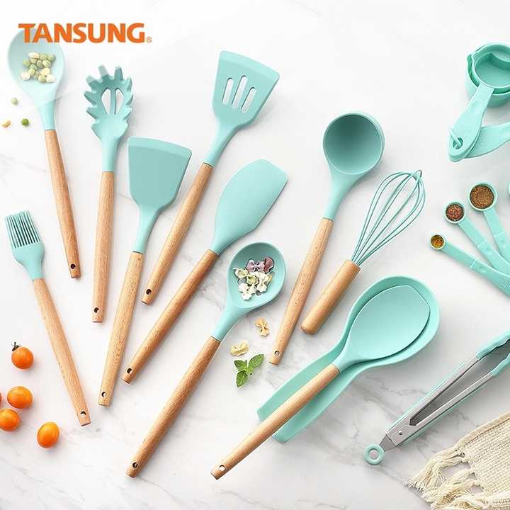 This 12pcs Set of Silicone Cooking Spoon is a new and superior color cooking spoon set that can be used for baking, stirring, cooking, and other uses. This is a safe, dependable, and simple tool to use in your kitchen. A necessity and a must-have in the kitchen. Each spoon is made of food-grade silicone and wooden material.