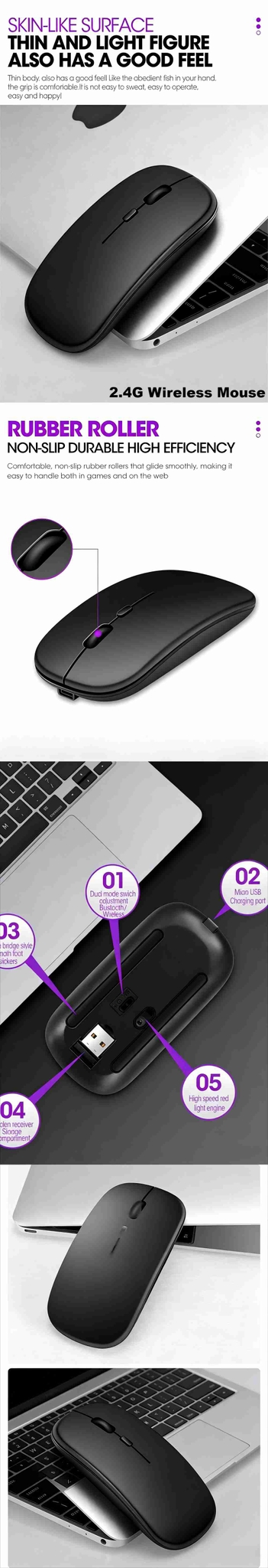 - Automatically smart sleep function,once PC sleep,the mouse is sleeping automatically.