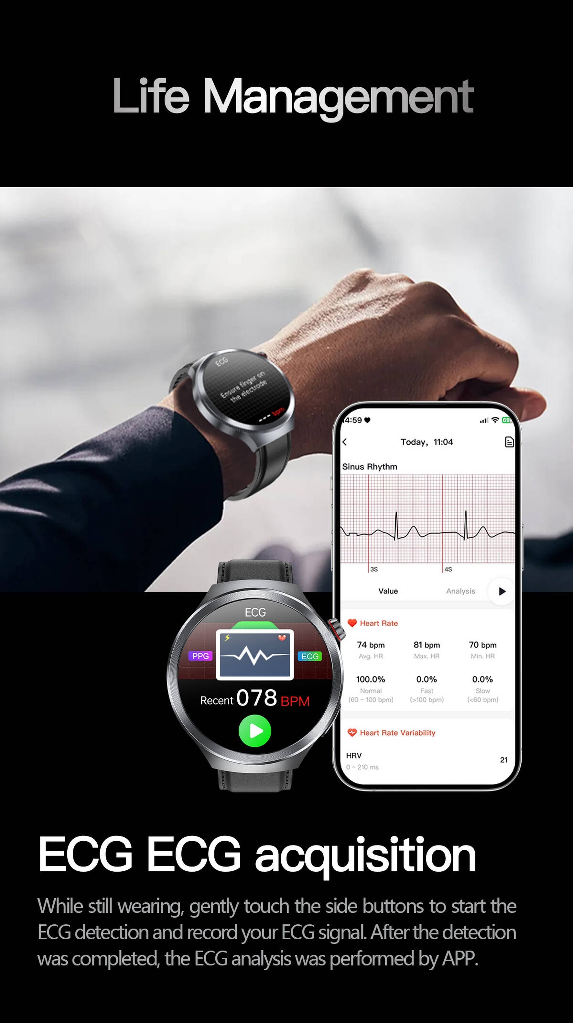 -ECG Monitoring | Micro-Physical Exam | Non-Invasive Blood Composition Analysis (Uric Acid & Lipid)