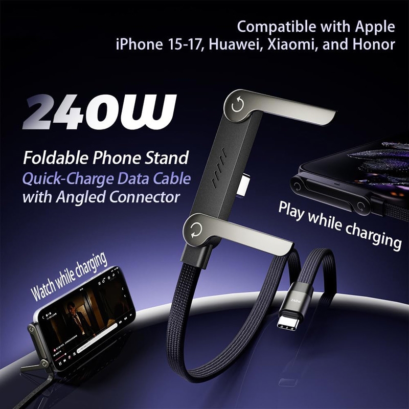 Foldable Stand Design: Built with a precision hinge structure that allows multi-angle free positioning, providing stable support in both landscape (for videos) and portrait (for work) modes. The charging cable is cleverly integrated into the stand, eliminating desktop cable clutter
