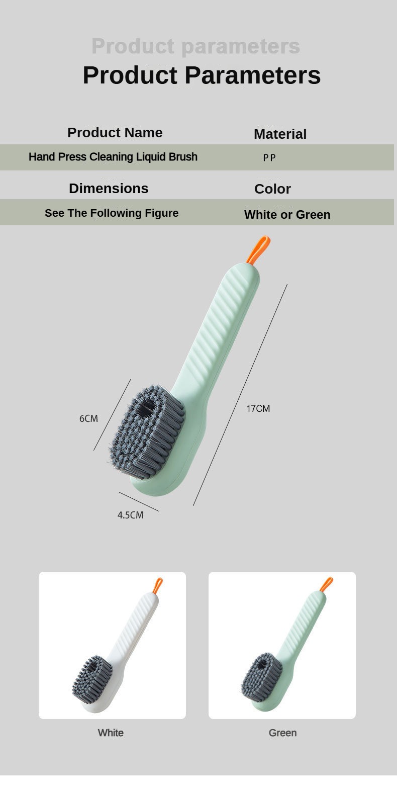 Revolutionize your cleaning routine with our 2-in-1 soap-dispensing scrub brush! Featuring ultra-durable bristles for tough stains and a built-in liquid detergent reservoir, this brush automatically releases rich foam at the press of a button—no more messy soap bottles! The soft-yet-firm fibers tackl e grime on tubs, tiles, upholstery, and kitchen surfaces, while the round ergonomic handle reduces hand fatigue. Plus, its hang-dry silicone base keeps it hygienic and space-saving.
