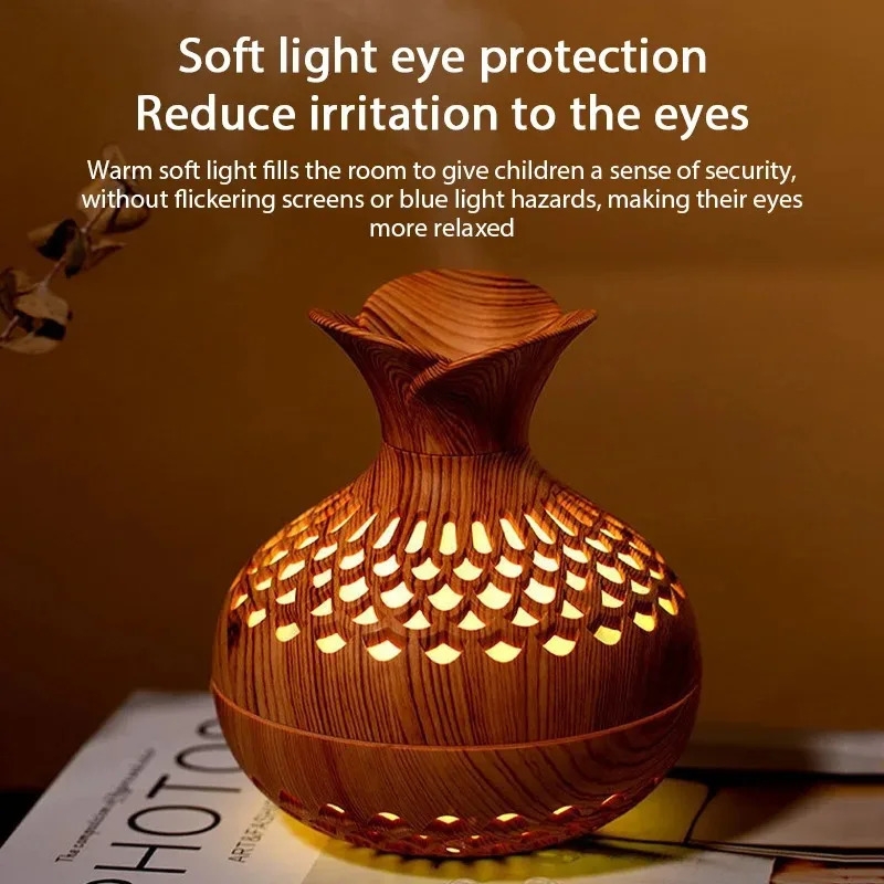 300ml USB Air Humidifier Mini Humidifier Desktop Humidifier Hollow Vase Shape Humidifier With Colorful Night Lights 7 colors,2 Mist Modes-Light wood grain