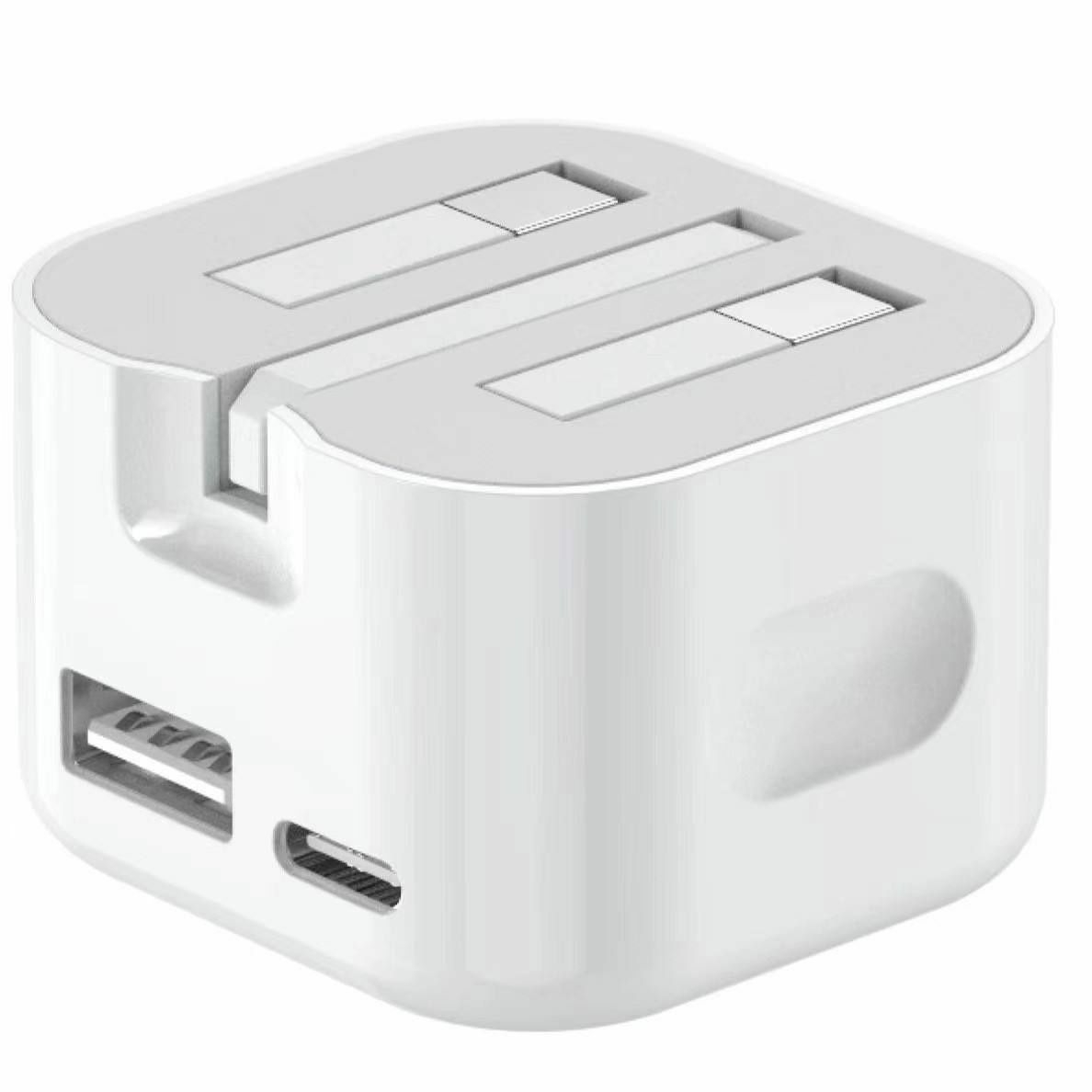 When using USB-C and USB-A at the same time, the wall-mounted charger distributes output power of 15W to the two ports. Through the built-in smart power chip. Note: When two USB ports are used at the same time, fast charging is not supported.