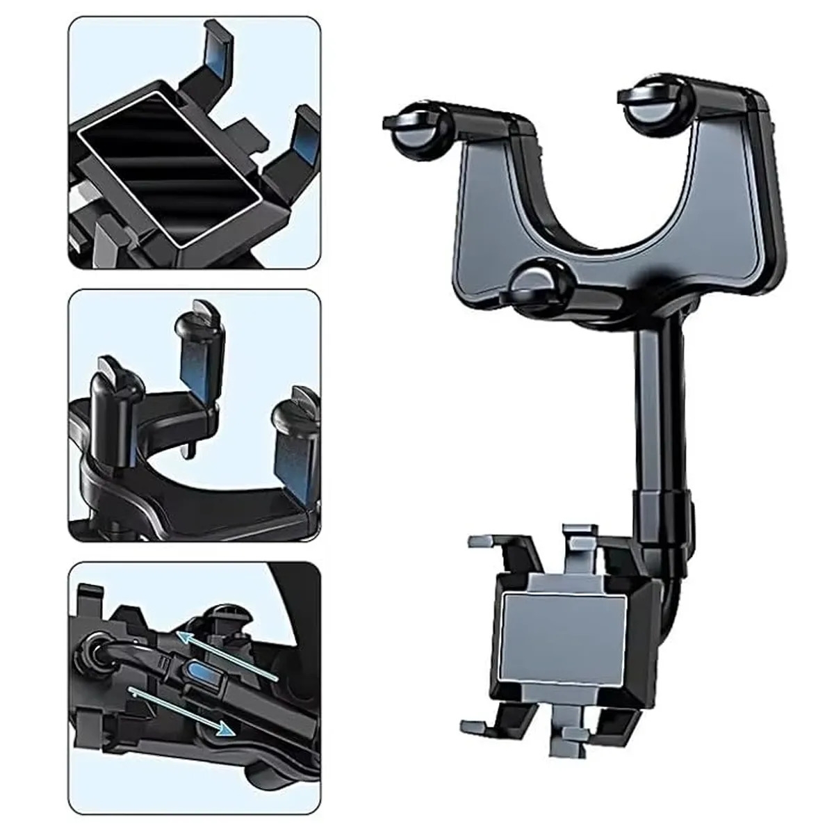[Upgrade 360°Rotatable & Retractable Car Holder]: Multifunctional rearview mirror phone holder adopts a 360°rotating structure, Switch between horizontal and vertical screens at will, The arm length can be retractable 0-5cm, super flexible design provide you with the best viewing angle.
