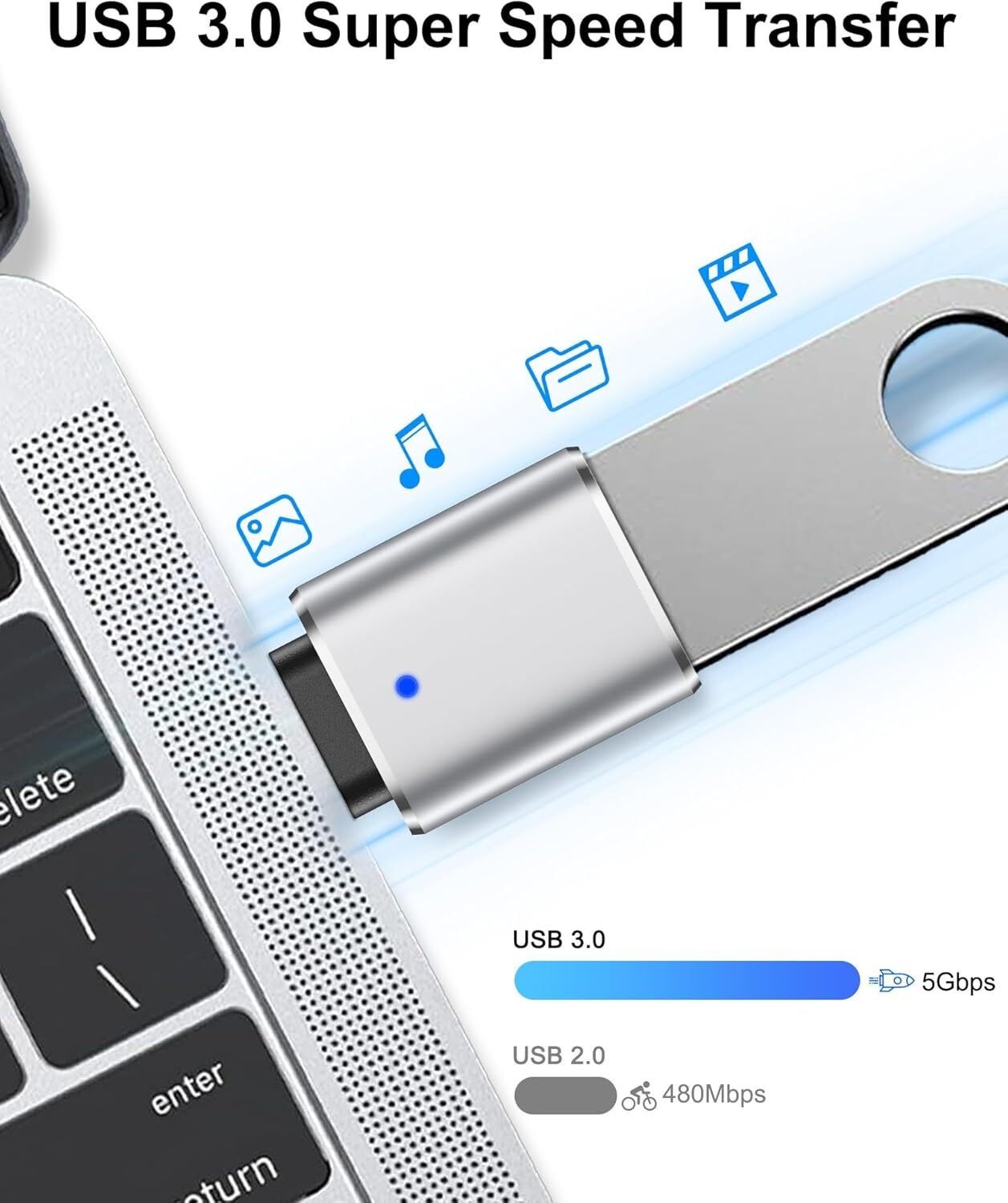 USB-A Female to USB-C Male: Connects traditional USB-A cables/devices to modern USB-C hosts.