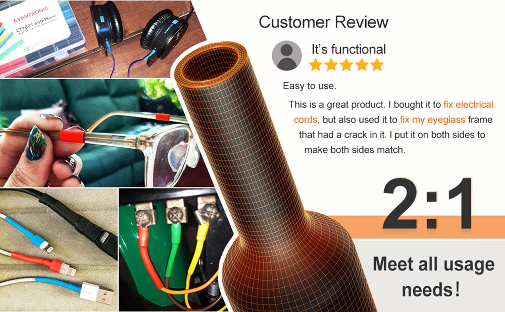 Key Features530 pieces of heat shrink tubing, 8 specifications to meet your different needsThe hot air g-u-n has multiple functions and can be used for heating shrinkage, DIY handicrafts, etc.The temperature of the hot air g-u-n is not adjustable. In theory, it can reach 200 degrees in a few seconds.The hot air g-u-n should not work for more than 10 minutes, and blow at a 45-degree angle to avoid heat absorption.