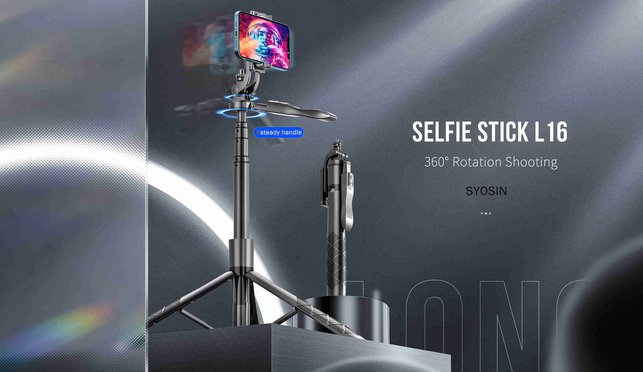 L16 Selfie Stick is a long, sturdy and versatile selfie stick + tripod designed to support and stabilise your phone while improving the quality of your photo/video content.