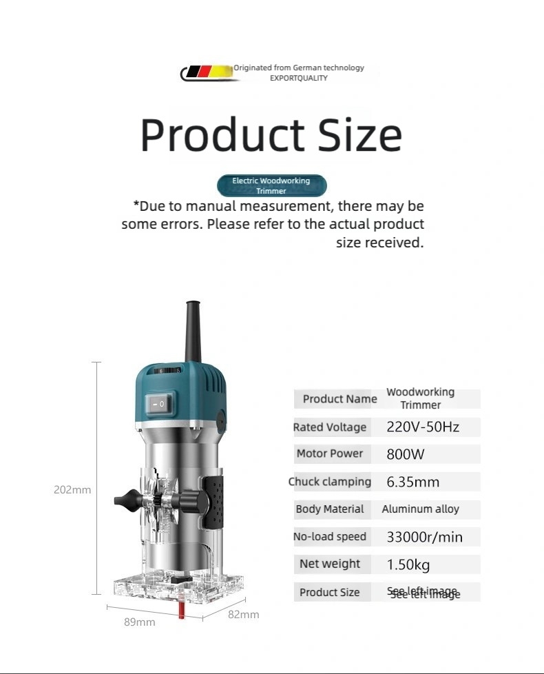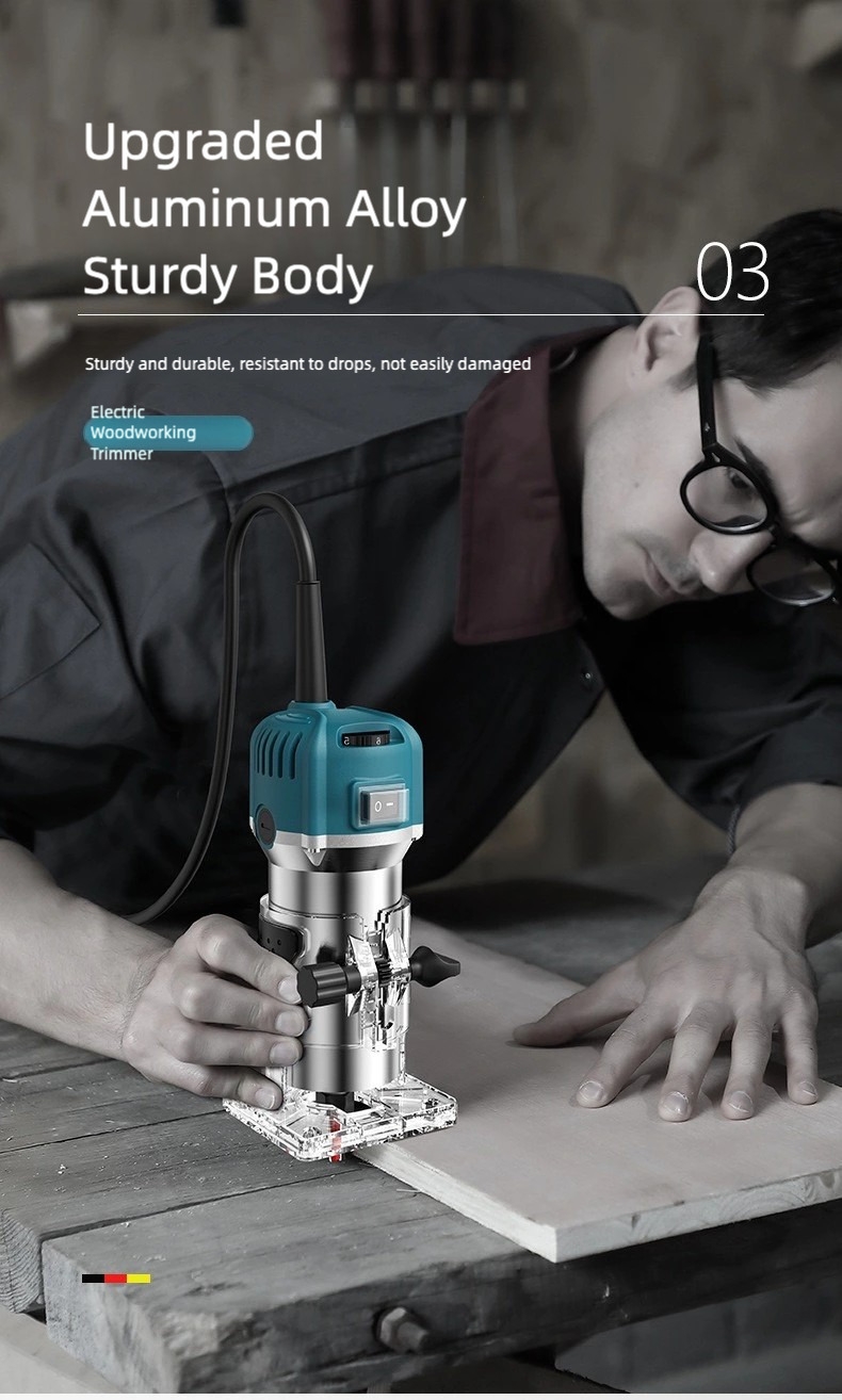 Whether you are building shelves, repairing furniture, or crafting wooden decorations, this electric trimming machine is a reliable tool for your home workshop.