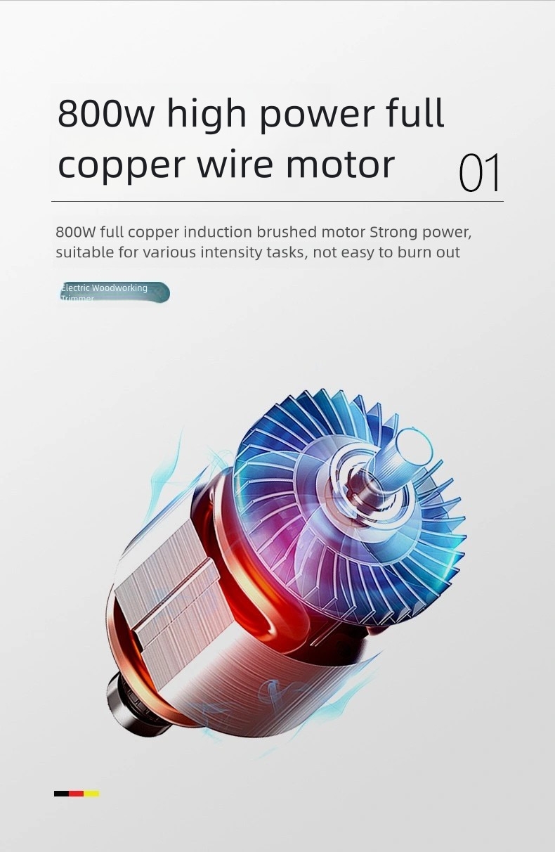 This 800W laminate trimmer mini router is designed for efficient and versatile woodworking operations. It is suitable for laminate trimming, wood shaping, decorative edge routing, grooving, and fine cutting tasks.