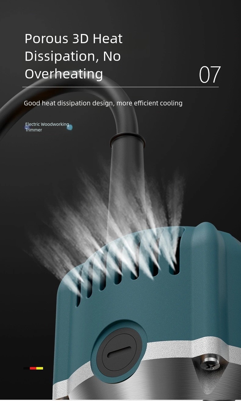 Perfect for carpenters and DIY enthusiasts, this router trimmer allows precise cutting and shaping when making cabinets, tables, doors, and other wooden furniture.