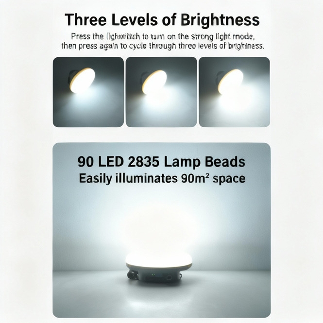 • 90 LED 2835 beads with 3 brightness levels – light up 90 m² on high, save energy on low