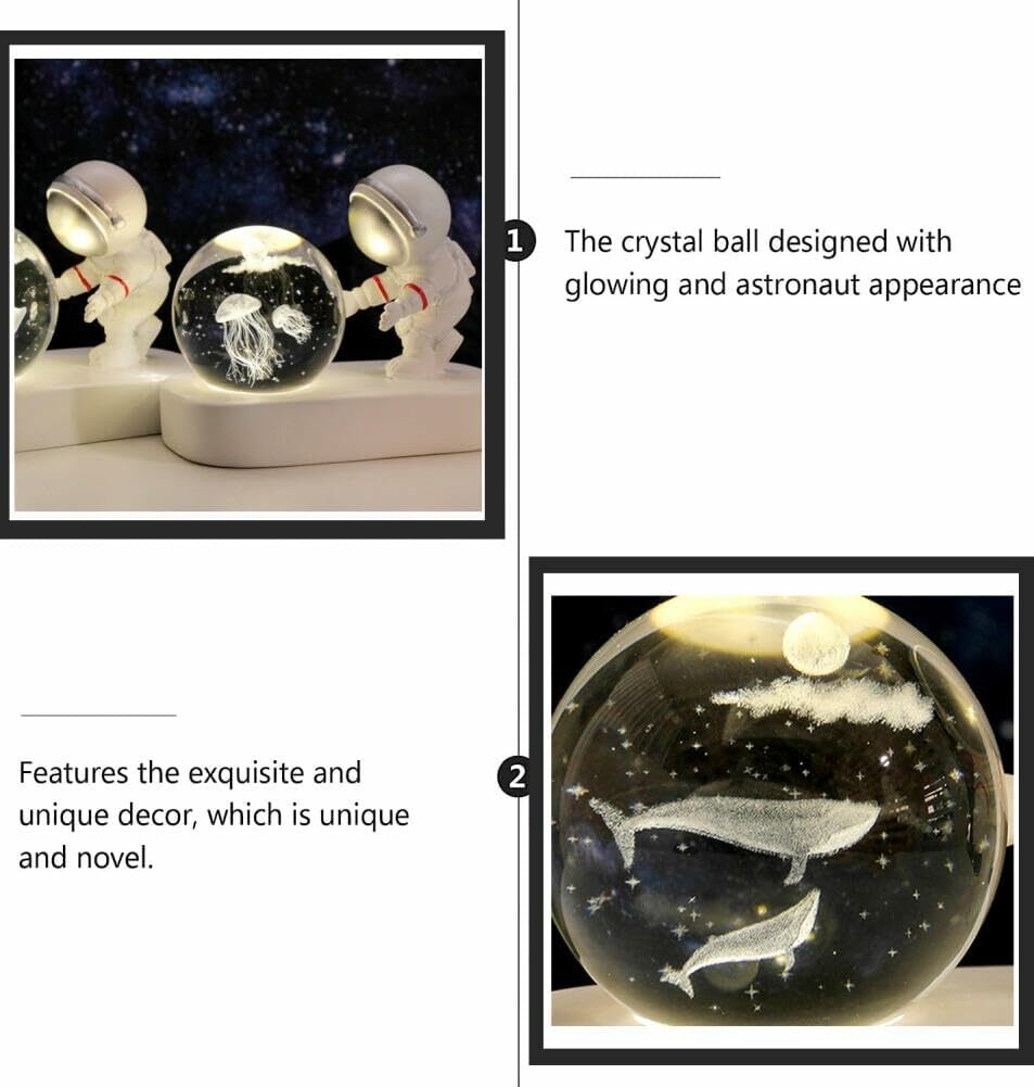 ✔3D Crystal Ball Night Light, USB Powered: This night light/table lamp features an astronaut shape and comes with an LED base, inspired by a space c-apsule.