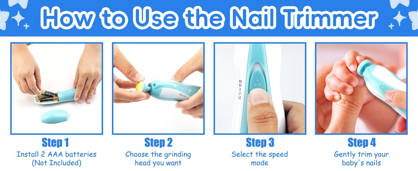 Nearly silent operation allows stress-free nail care even during baby's sleep.