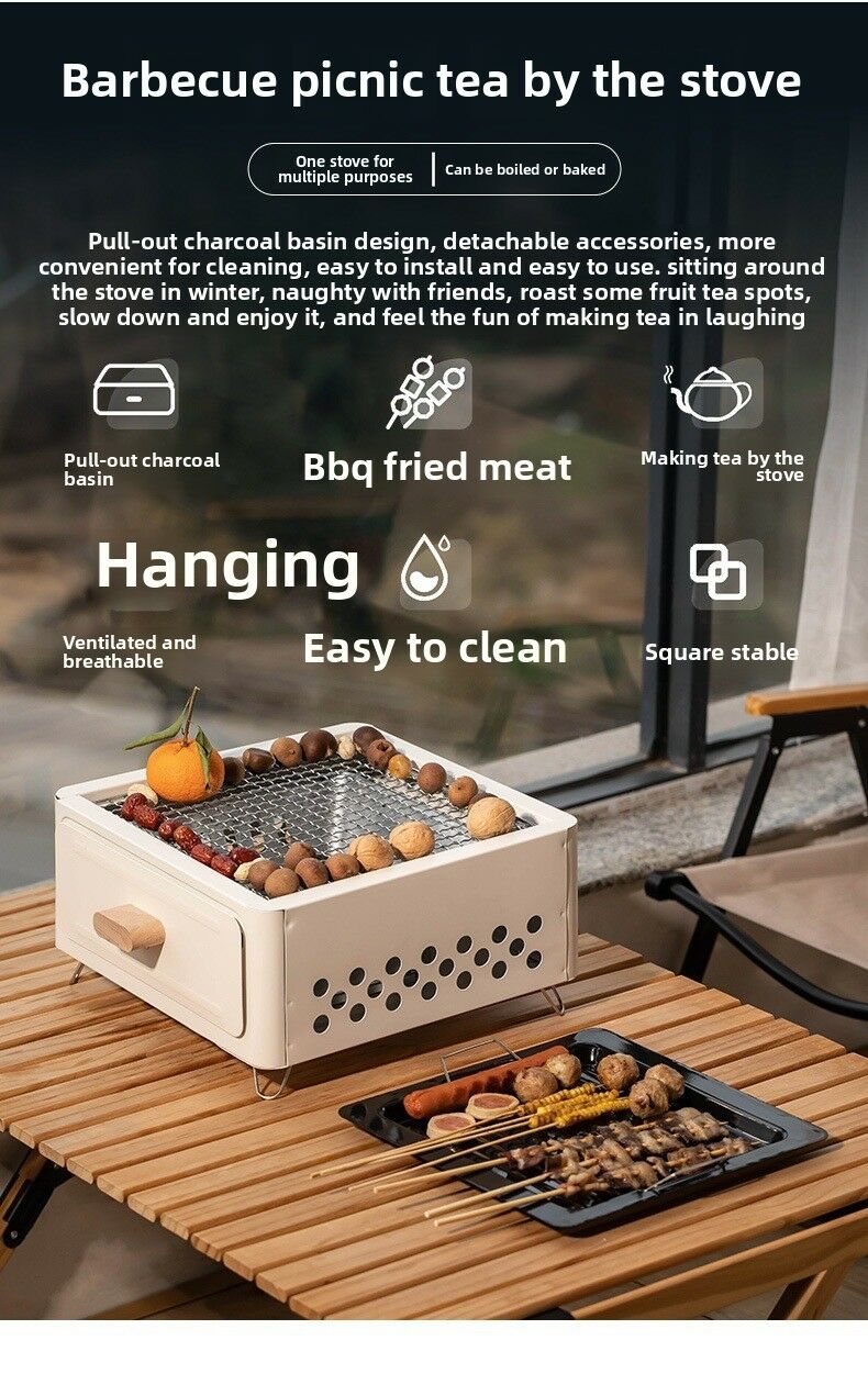 Barbecue Grill Portable Charcoal Stove Tabletop Camping Grill Square Charcoal Grill Stove for Outdoor Cooking Camping Picnics Beach