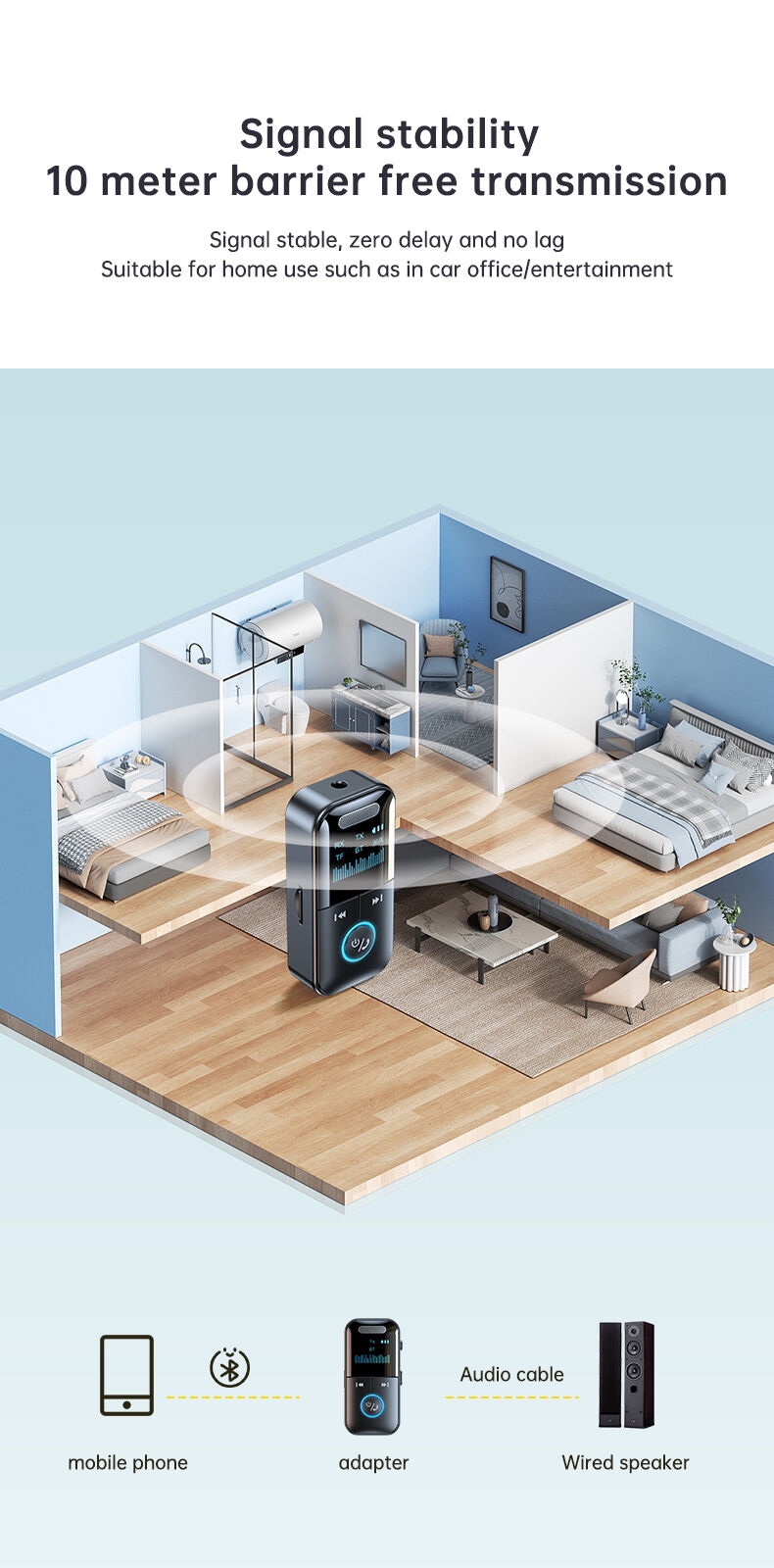 Bluetooth 5.4 Aux Adapter Audio Receiver Transmitter 3.5mm Jack LED Display for Car/Home Stereo/Wired Headphones/Speaker/TV