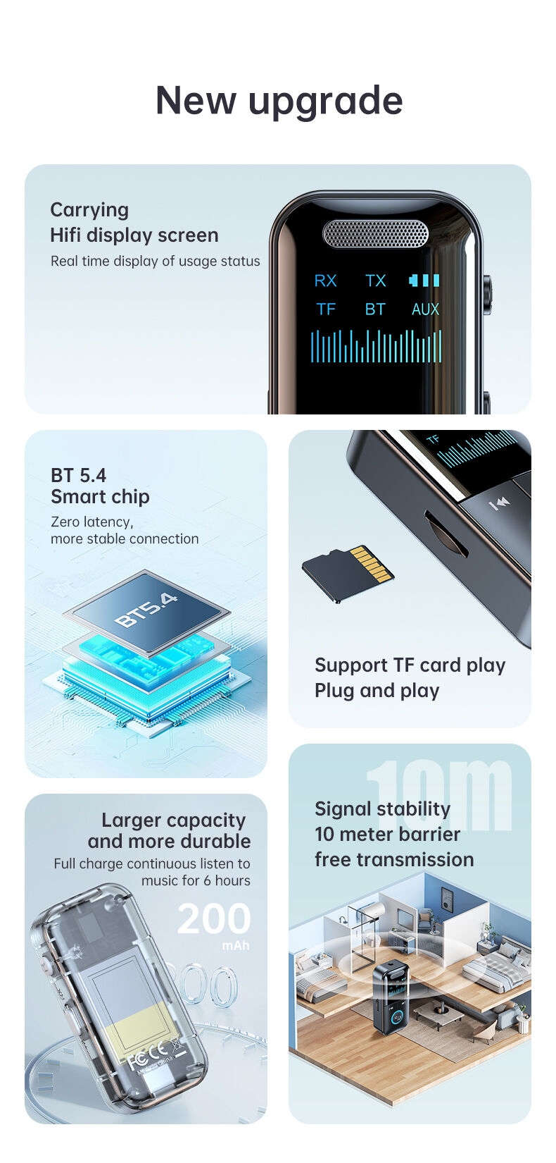 Bluetooth 5.4 AUX Adapter, Wireless Audio Receiver Transmitter, 3.5mm Jack Bluetooth Adapter, LED Display Bluetooth AUX, Car Bluetooth Audio Adapter, Home Stereo Bluetooth Receiver, TV Bluetooth Transmitter,