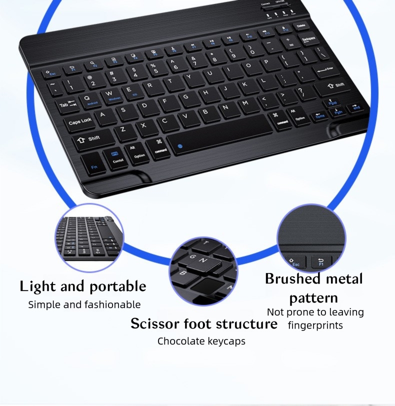 Product Features: 10-inch Bluetooth Keyboard & Dual-Mode Mouse Combo. The keyboard uses Bluetooth, and the mouse supports both Bluetooth and 2.4G. Universally compatible with Android, Windows, and iOS devices. Offers quick response, a portable design, and long battery life—crafted for mobile Product Attributes: Interface: Keyboard (Bluetooth), mouse (Bluetooth, 2.4G)