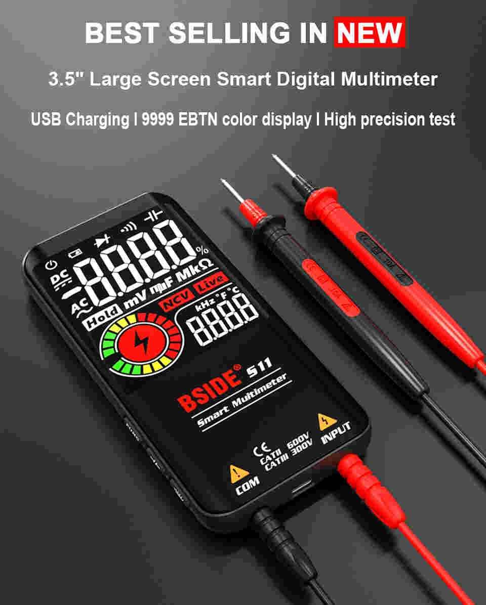 * High Precision Display:Features a 9999 counts smart multimeter with a large EBTN colored LCD for easy, clear readings.