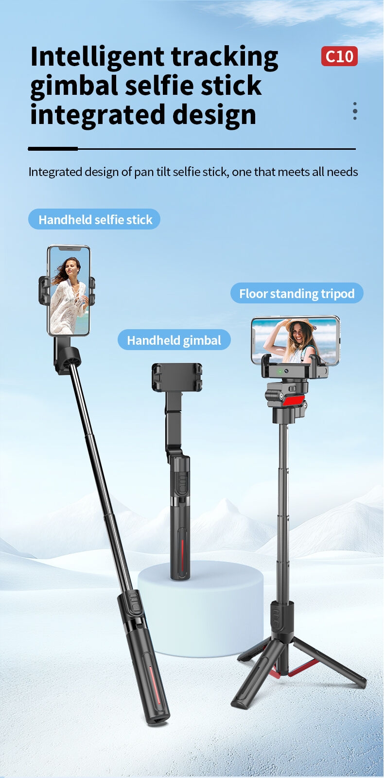 C10 Handheld Stabilizer Gimbal Smartphones AI Face Tracking Vlog Live Streaming Selfie Stick Tripod