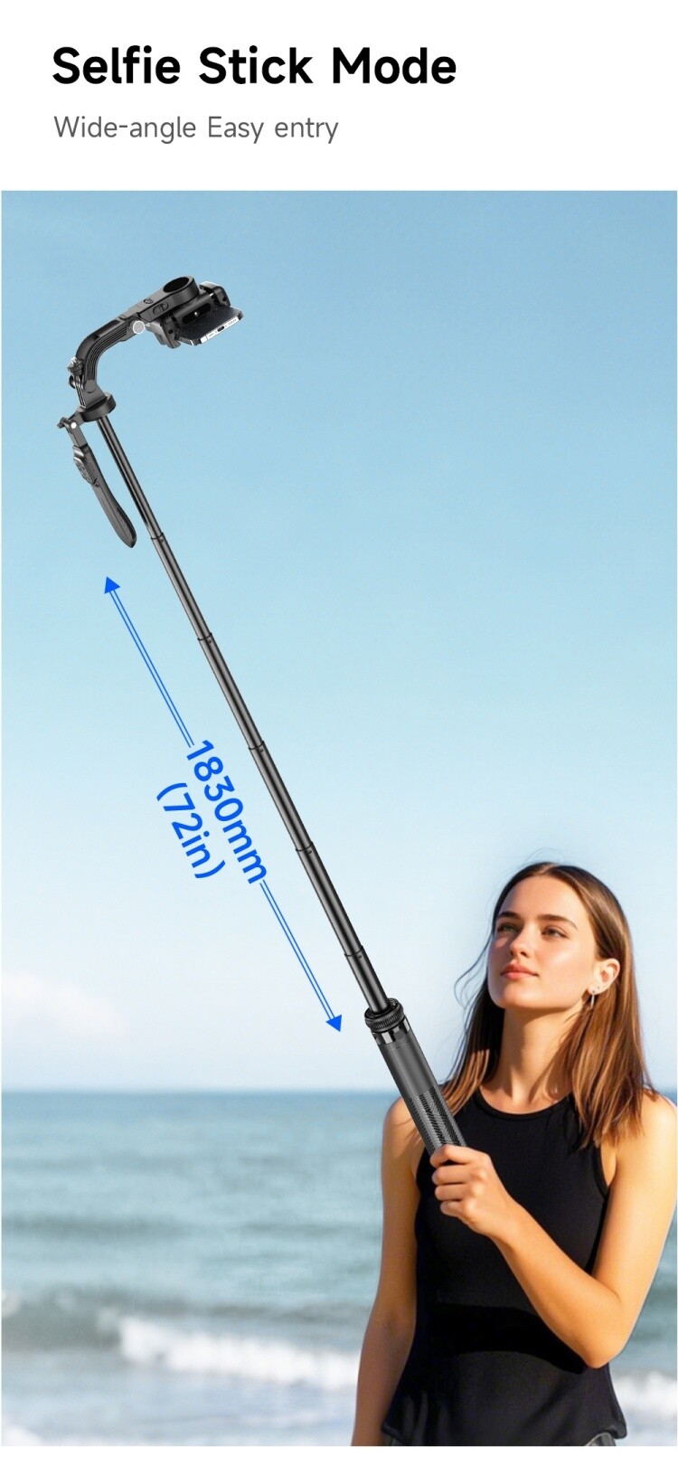 1. Independent lens, Ai intelligent tracking. 2. Intelligent anti-shake core, shoot while walking. 3. 3-in-1, not only tracking gimbal, but also quadrupod and selfie stick. 4. Balanced anti-shake shooting handle. 5.Detachable multi-function remote control, with APP, shooting more interesting. 6.Adjustable stable quadrupod. 7.High-end stable aluminium alloy pole.