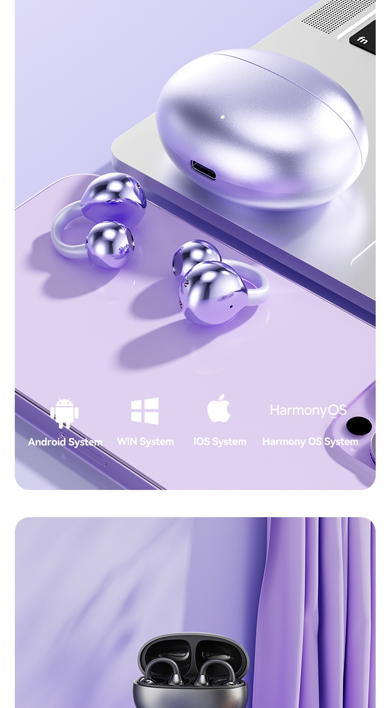 HomePhones & TabletsMobile Phone AccessoriesBluetooth HeadsetsClip on Earbuds Open Ear Wireless Bluetooth 5.4 Headphones Earphones with Wireless Charging Case