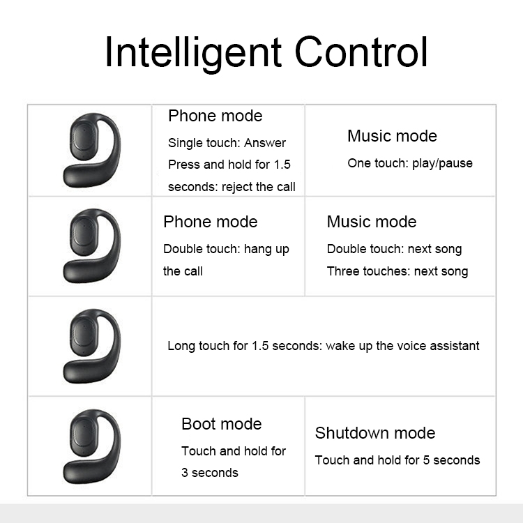 4. Functions: smart touch, high-definition calling, non-sensory wearing, pause music playback, answer and hang up calls